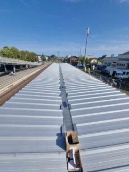 Abbruch und Entsorgung der bestehenden Dachhaut, Einbau neuer Stahlträger incl. Korrosionsschutz nach ZTV-Ing. und Einbau einer neuen Dachhaut mit Sandwichpaneelen (ca. 850,00 m²) , Einbau neuer Dachrinnen incl. Randverwahrung. Elektro- und Erdungsarbeiten für das neue Dach. Stützensockelsanierung incl. Korrosionsschutz nach ZTV-Ing. des bestehenden Dachtragwerkes.